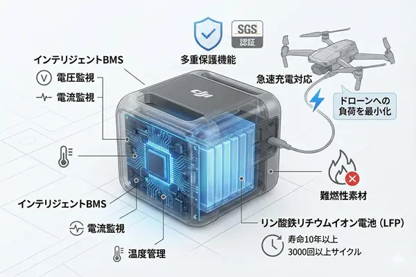 これは、バッテリーと充電器の両方を自社で開発しているDJIだからこそ実現できる、高度な安全設計と言えます。