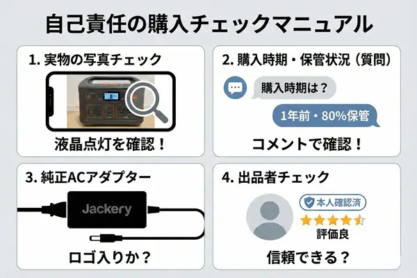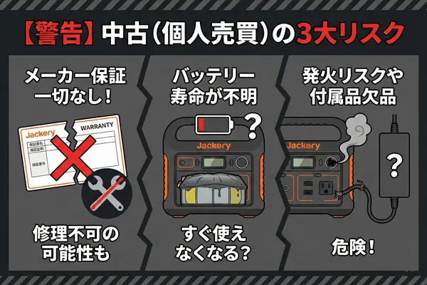 次の章では、販売ページの写真や説明文だけでは絶対に分からない、中古Jackeryの致命的なリスクについて解説します。
